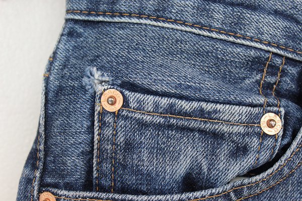 ・右のフロントポケットに一箇所の破れと、